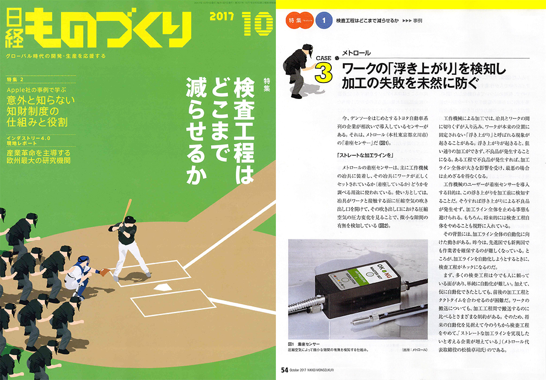 日経ものづくり『検査工程はどこまで減らせるか』特集に、新製品「エアマイクロセンサ」が記事掲載されました