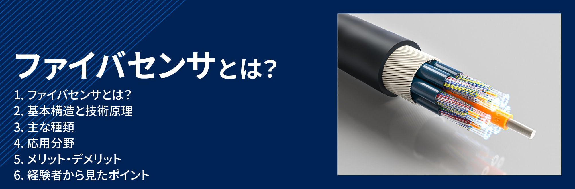 ファイバセンサ(光ファイバセンサ)とは、通信に用いられる細い光ファイバをそのままセンサとして利用し、温度・ひずみ・圧力など様々な物理量を光信号の変化として計測する技術です。