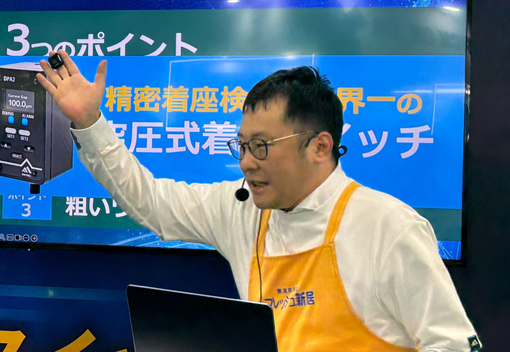今回もしゃべりのプロが製品特長、従来製品との違いなどをポイントを押さえた説明と笑いで紹介を行います。